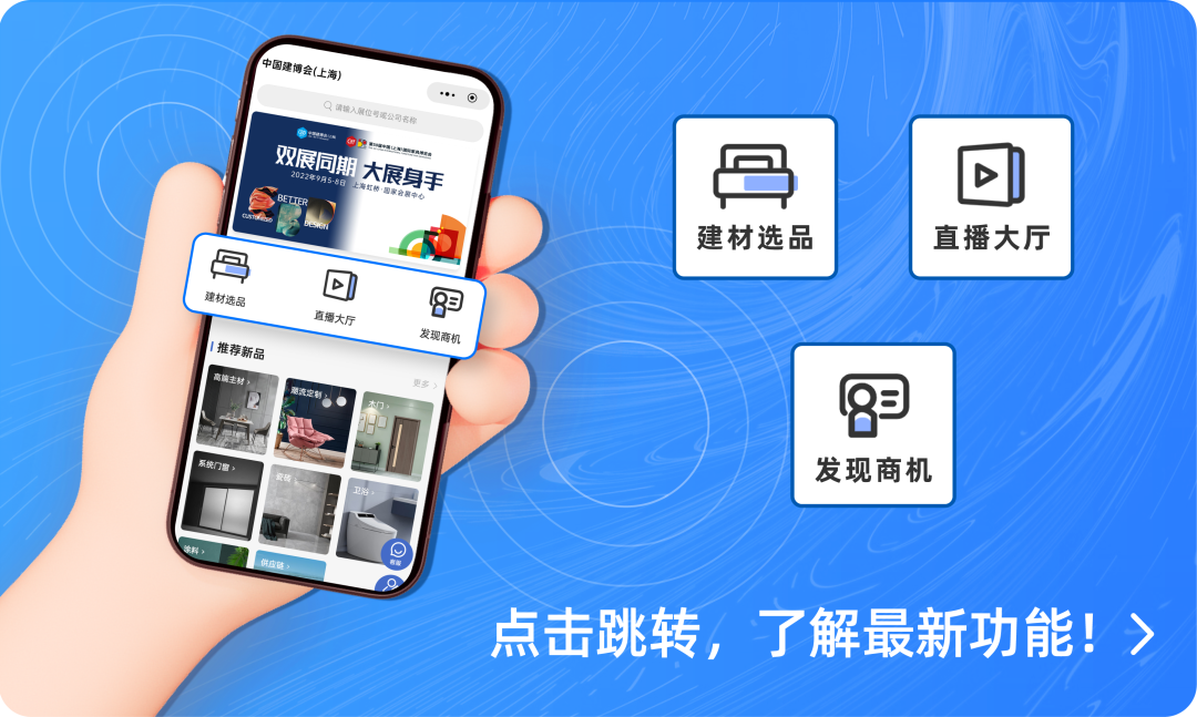 為了更有效地服務(wù)展商和觀眾,中國(guó)建博會(huì)(上海)官方小程序“CBD 上海虹橋”全新優(yōu)化升級(jí),新增建材選品及直播大廳兩大功能。其中,全新升級(jí)的功能鏈接多方資源,促進(jìn)高質(zhì)量交流,力求為參展企業(yè)與行業(yè)經(jīng)銷商搭建高效的商貿(mào)配對(duì)平臺(tái)。