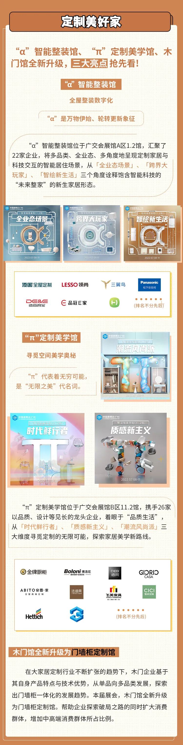 今年,中國建博會(廣州)定制主題展區(qū)煥新升級,聚合業(yè)內眾多龍頭企業(yè)與跨界代表品牌,全面呈現(xiàn)定制行業(yè)發(fā)展趨勢。7月8-11日,相約廣交會展館、保利世貿博覽館,共同領略定制主題展區(qū)的嶄新魅力!