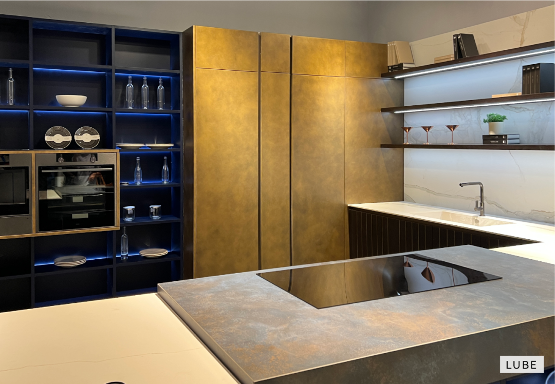 代表品牌:海福樂、德盾、LUBE、博洛尼等磨損表面大受歡迎,因?yàn)樗鼈優(yōu)楫a(chǎn)品和空間增添做舊氣息和個(gè)性質(zhì)感,黃銅和銅因?yàn)殂~銹特質(zhì)而變?yōu)殛P(guān)鍵的金屬材料,被用于兼具粗糙和精致的家具產(chǎn)品如海福樂與德盾的門板設(shè)計(jì)。這些效果為家具和配件添加了紋理元素,幫助家具隨著時(shí)間推移而變得愈發(fā)富有魅力和個(gè)性風(fēng)格。LUBE與博洛尼在廚房的柜體設(shè)計(jì)中以粗糙的材質(zhì)表面搭配細(xì)致光滑版材,鮮明對(duì)比為空間帶來(lái)獨(dú)特魅力。