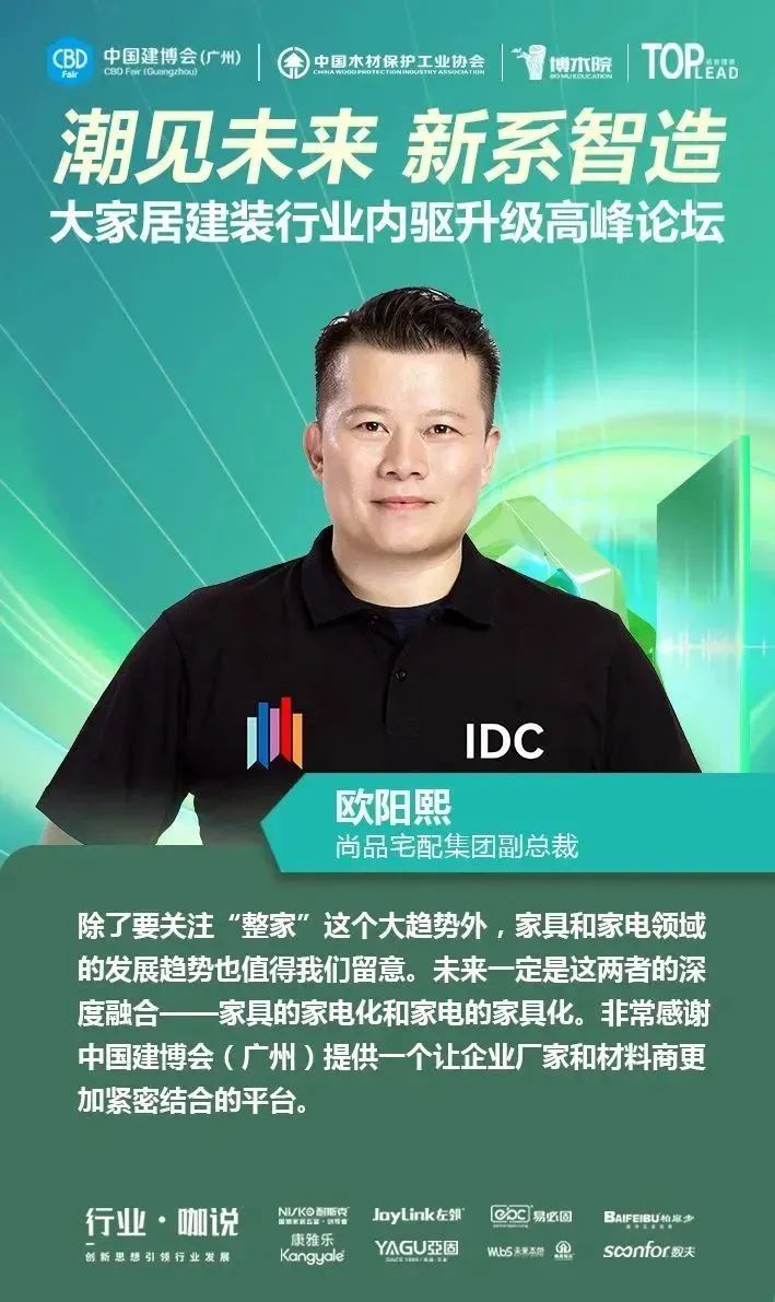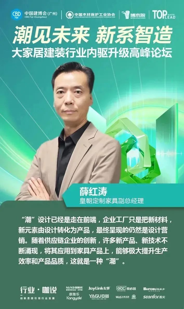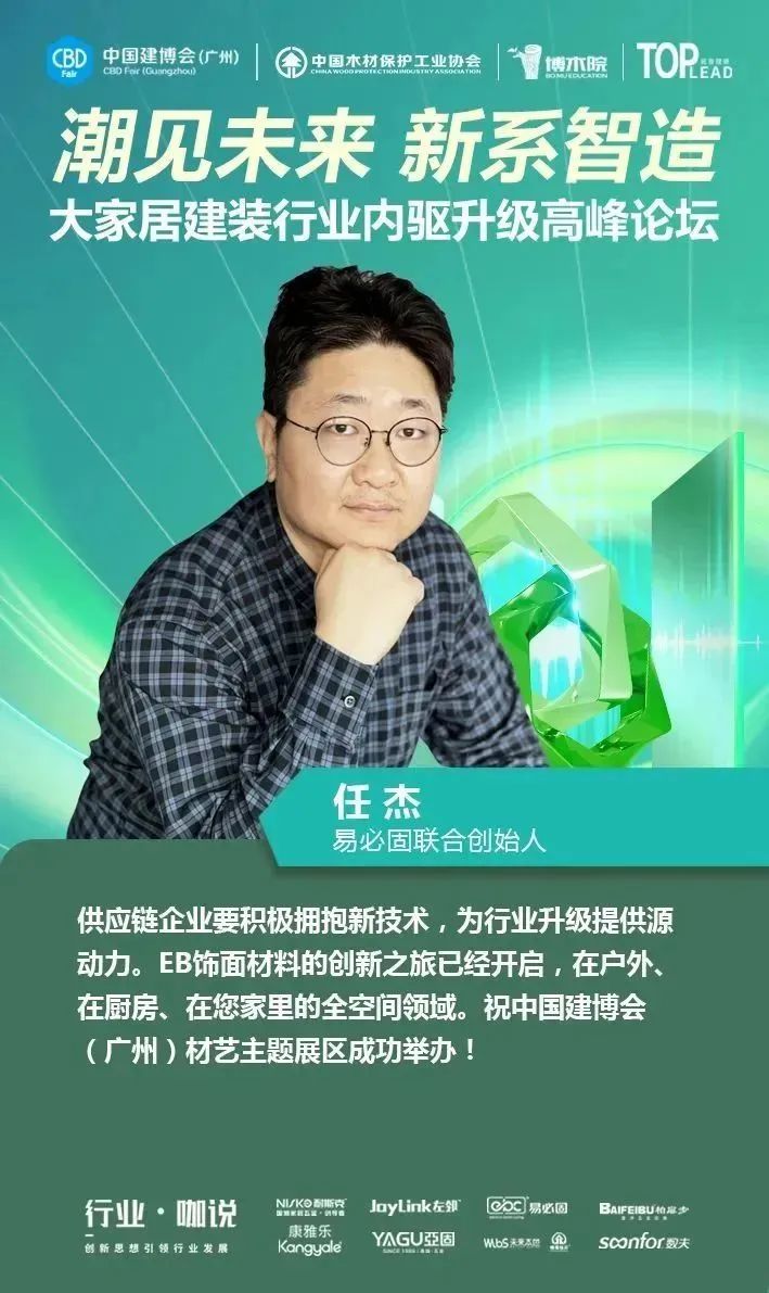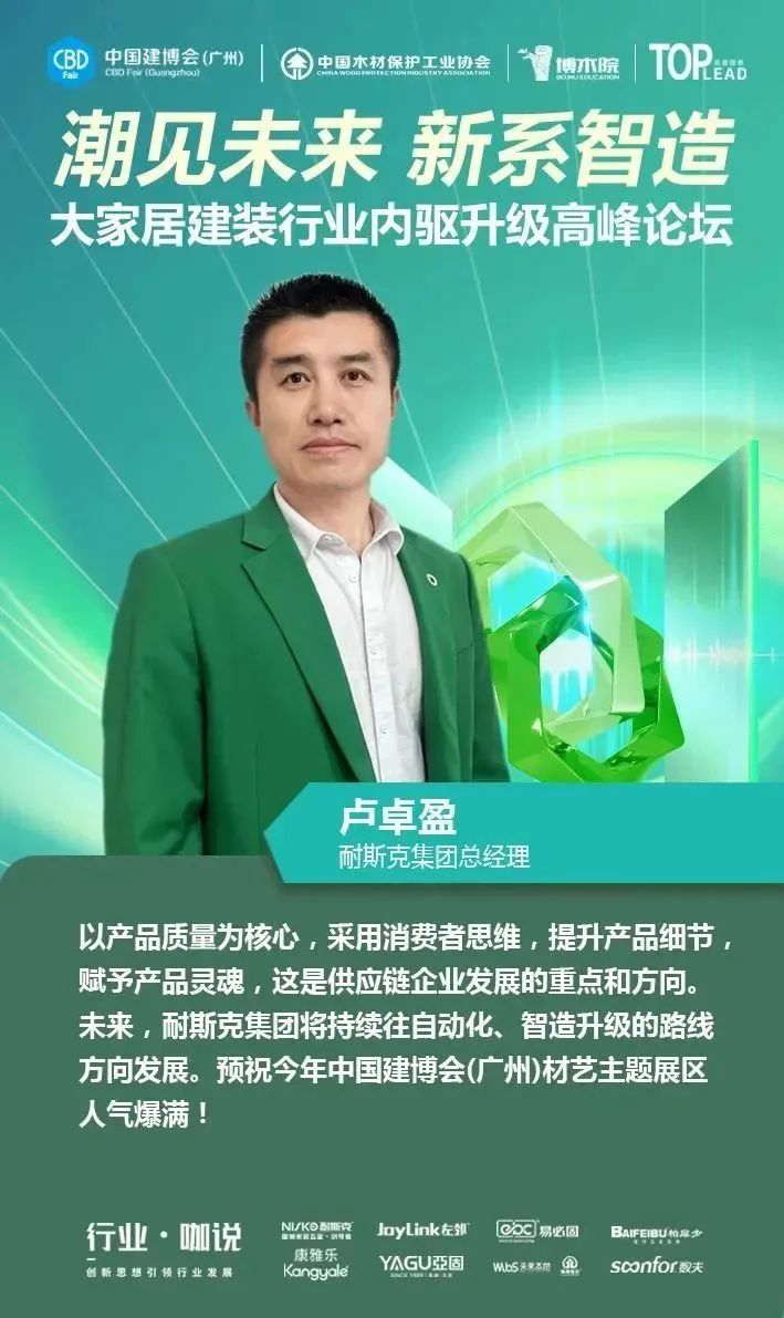 4月12日,中國(guó)對(duì)外貿(mào)易中心集團(tuán)有限公司旗下的中國(guó)建博會(huì)(廣州)聯(lián)合中國(guó)木材保護(hù)工業(yè)協(xié)會(huì)、博木院、拓普理德,在廣交會(huì)威斯汀酒店隆重舉行“【潮見(jiàn)未來(lái) 新系智造】大家居建裝供應(yīng)鏈內(nèi)驅(qū)升級(jí)高峰論壇”,并舉辦了2023中國(guó)建博會(huì)(廣州)“大家居建裝供應(yīng)鏈星舞臺(tái)”啟動(dòng)儀式。本場(chǎng)論壇得到了耐斯克集團(tuán)、左鄰五金、易必固、未來(lái)本色、聯(lián)迅、康雅樂(lè)、亞固、數(shù)夫軟件的大力支持,現(xiàn)場(chǎng)匯聚了150多位大家居建裝行業(yè)上下游產(chǎn)業(yè)鏈的企業(yè)家、行業(yè)大咖、設(shè)計(jì)師等專業(yè)人士,一同探尋企業(yè)內(nèi)驅(qū)升級(jí)的領(lǐng)軍解決方案,共同探討行業(yè)上下游供應(yīng)鏈通道,助力大家居建裝行業(yè)實(shí)現(xiàn)全鏈協(xié)同創(chuàng)新發(fā)展。