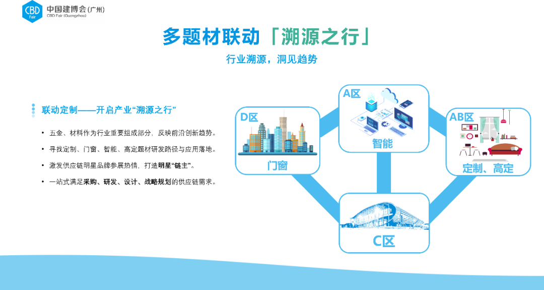憑借中國(guó)建博會(huì)(廣州)全產(chǎn)業(yè)鏈展出題材屬性和優(yōu)勢(shì),一站式滿足大家居建裝行業(yè)全產(chǎn)業(yè)鏈采購(gòu)、研發(fā)、設(shè)計(jì)、戰(zhàn)略規(guī)劃的供應(yīng)鏈需求。