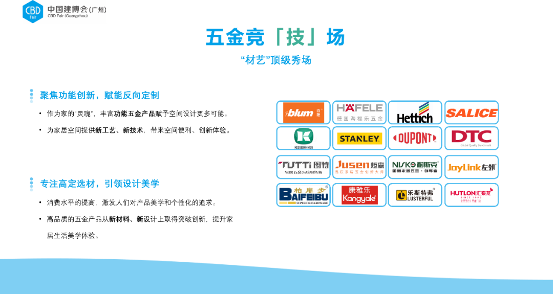 材藝主題展區(qū)依托廣交會(huì)展館C區(qū)的天然區(qū)位優(yōu)勢(shì),將成為銜接中國(guó)建博會(huì)(廣州)與廣州國(guó)際衛(wèi)浴博覽會(huì)的關(guān)鍵樞紐,將最大程度地共享兩展觀眾客流,實(shí)現(xiàn)不同題材的跨界互動(dòng),聯(lián)動(dòng)國(guó)內(nèi)外頂級(jí)五金、衛(wèi)浴、材料翹楚品牌,打造國(guó)際化水平最高的“大家居建裝供應(yīng)鏈星舞臺(tái)”。