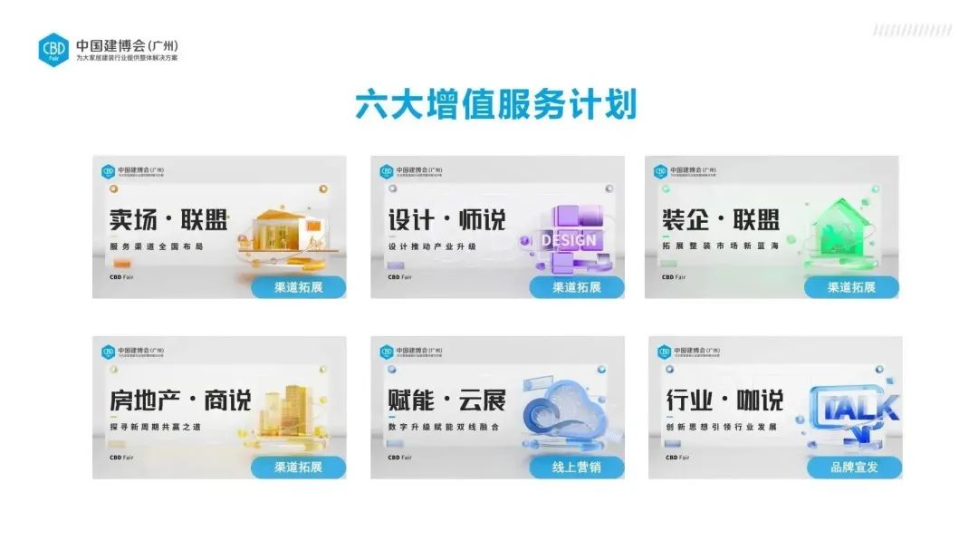 聚焦房地產(chǎn)商渠道,構(gòu)建“會(huì)展平臺(tái)+品牌企業(yè)+房地產(chǎn)商”的新型渠道體系,為企業(yè)嫁接更多房產(chǎn)資源,助力產(chǎn)業(yè)鏈上下游的高效對(duì)接。