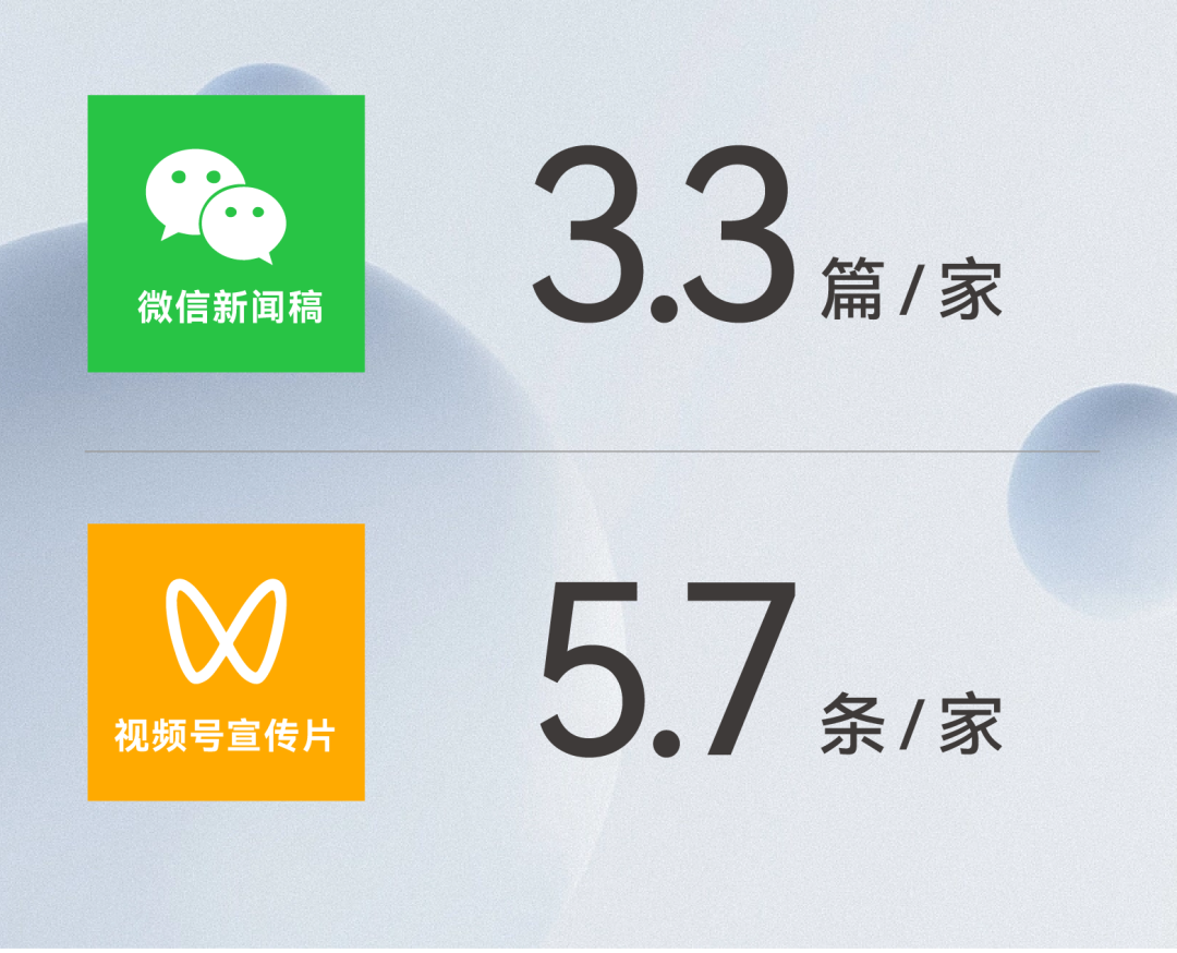在虹橋的72小時,高定參展品牌共發(fā)布70篇微信新聞稿、86條視頻號宣傳片,平均每家3.3篇和5.7條。其中A8空間發(fā)布視頻20條,堪稱高定界“勞?!?!此外,圖森的新聞稿單篇閱讀量達(dá)7973,客來?!じ镂镆曨l號單條點(diǎn)贊數(shù)達(dá)1140,名副其實(shí)的高定界宣傳“課代表”!