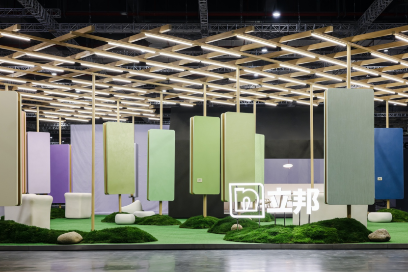 本次中國建博會(huì)(上海),立邦在展館設(shè)計(jì)上運(yùn)用開放式的結(jié)構(gòu),以立邦魔術(shù)漆作為線索,靈活運(yùn)用光影、色彩、質(zhì)感的藝術(shù),通過森林木屋與樹林的結(jié)合,為觀眾打造出獨(dú)特的自然之境。