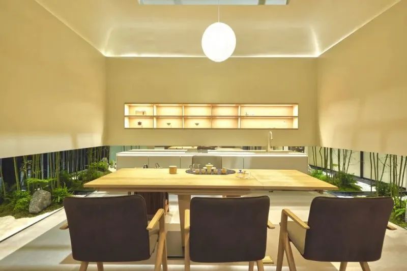 此次DOWOOD大木以“人亦是木,城市即林”為主題亮相此次中國建博會(上海)。展廳的整體設(shè)計保持品牌一貫的現(xiàn)代、自然、人文價值等產(chǎn)品理念,劃分為廚餐廳、客餐廳和臥房區(qū)三大區(qū)域。其中,兼顧功能性、美觀性和儲物性的酒窖空間設(shè)計;以法國歐橡與金屬元素相結(jié)合打造的廚房空間本真系列;以多材質(zhì)的產(chǎn)品,包括金屬、布衣和免漆等材質(zhì)所打造的臥房區(qū),都吸引著不少觀展者前來體驗。