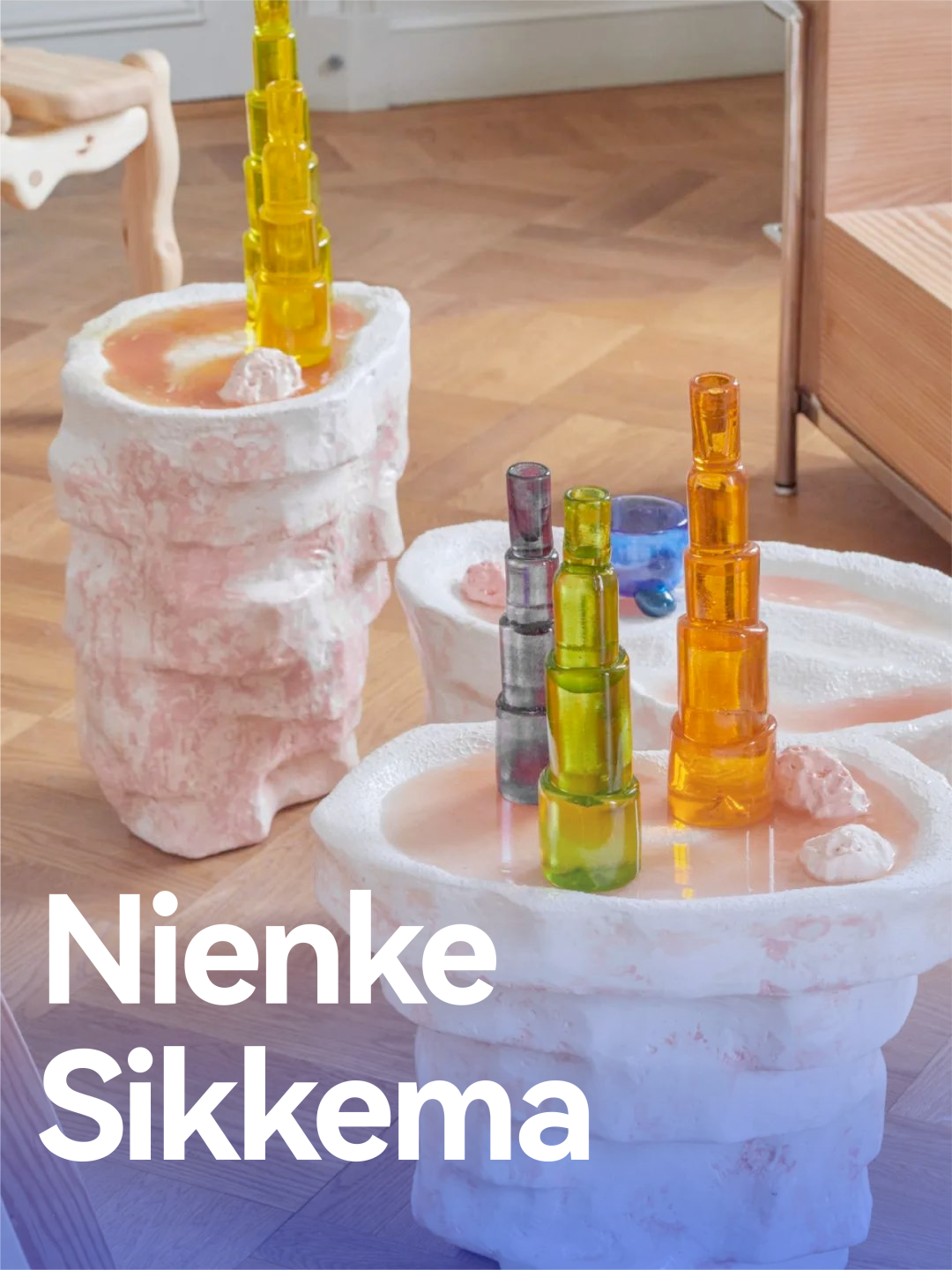 設(shè)計(jì)師Kajsa Melchior的作品跨越了設(shè)計(jì)和雕塑的邊界,其作品通過壓力來塑造沙子,創(chuàng)造性地模仿自然侵蝕過程;Nienke Sikkema的玻璃雕塑作品仿佛來自外星系的粉紅巖層,沒有過多裝飾卻令人體味到藝術(shù)的感染力;Laurids Gallee的鑲嵌作品融入了色彩繽紛的印花,為沉悶的空間注入非凡想象力。