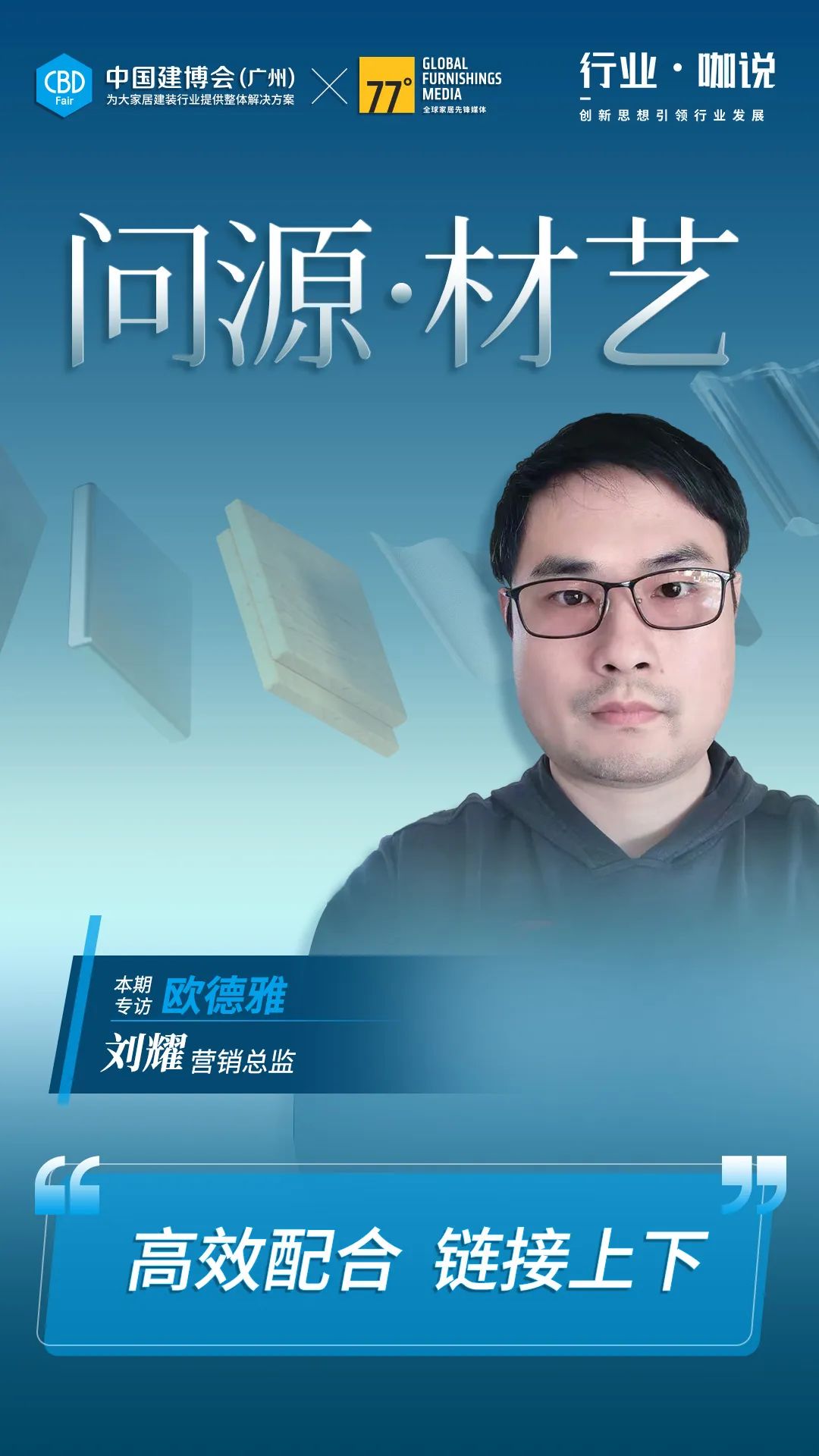 為探尋大家居建裝供應(yīng)鏈驅(qū)動產(chǎn)業(yè)升級的源動力,追溯極具前瞻性與顛覆性的新材料與新工藝,中國建博會(廣州)與77度共同發(fā)起「問源·材藝」系列專訪,本期專訪走進(jìn)東莞歐德雅裝飾材料有限公司,對話歐德雅營銷總監(jiān)劉總先生,分享歐德雅對定制市場的賦能以及企業(yè)在材料上的創(chuàng)新進(jìn)展。