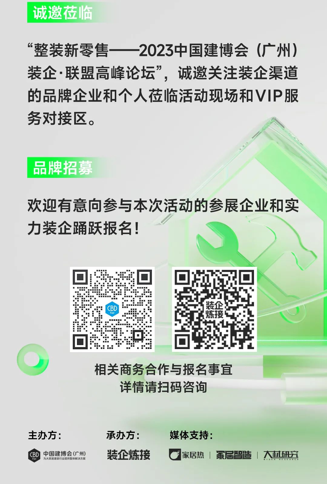 作為大家居建裝行業(yè)全球第一展,中國(guó)建博會(huì)(廣州)針對(duì)廣大參展企業(yè)發(fā)力整裝新市場(chǎng)、拓展裝企新生態(tài)的需求,協(xié)同裝企煉接、家居熱、家居智造、大材研究等創(chuàng)新知識(shí)傳媒矩陣、行業(yè)組織及媒體,發(fā)起“裝企 ?聯(lián)盟”增值服務(wù),以裝企為創(chuàng)新渠道著力點(diǎn),構(gòu)建“會(huì)展平臺(tái)+品牌企業(yè)+裝企”新型供應(yīng)鏈體系,助力參展企業(yè)與裝企之間精準(zhǔn)對(duì)接和實(shí)效合作,為彼此帶來新的增長(zhǎng)機(jī)遇。