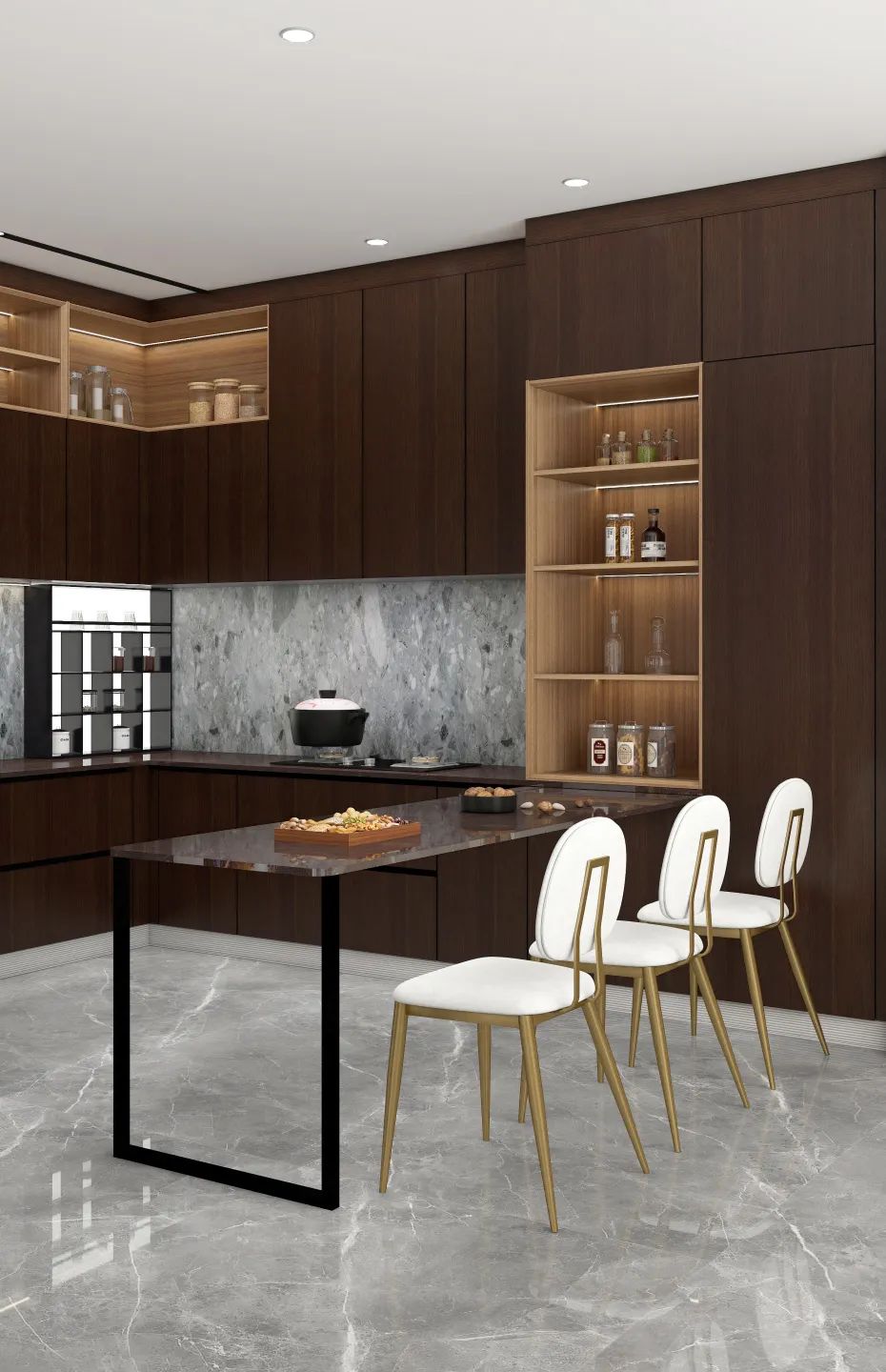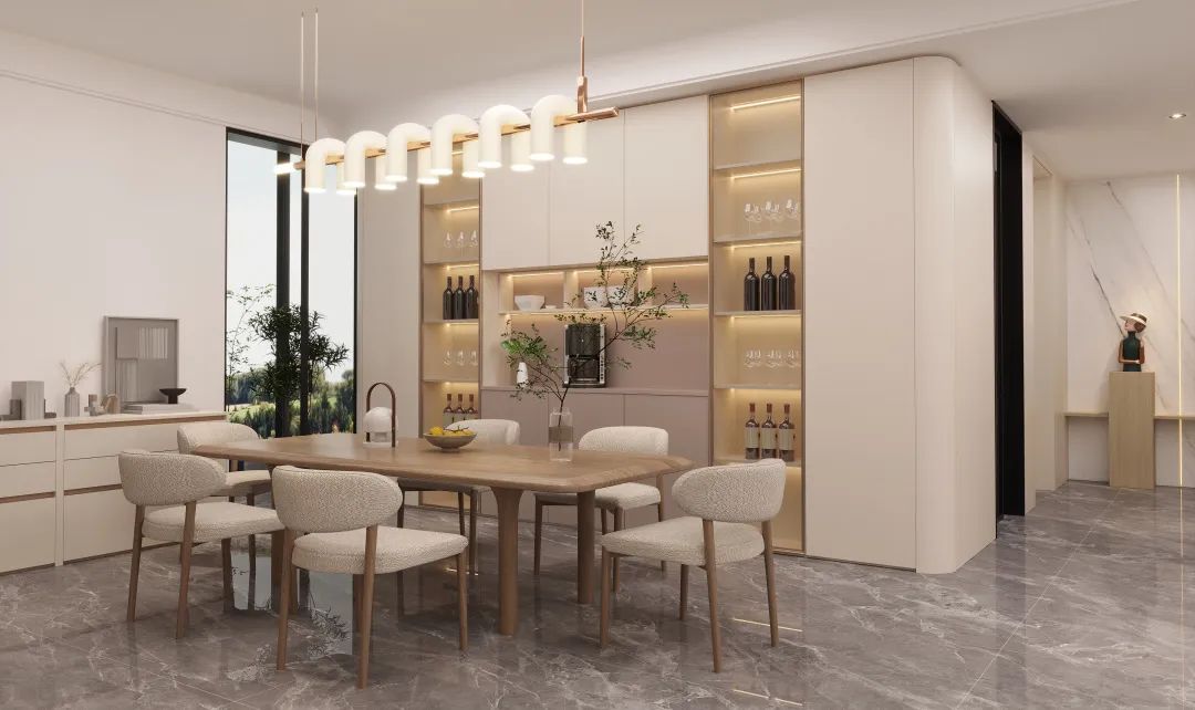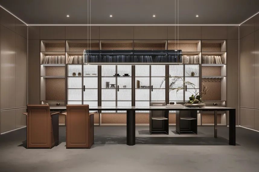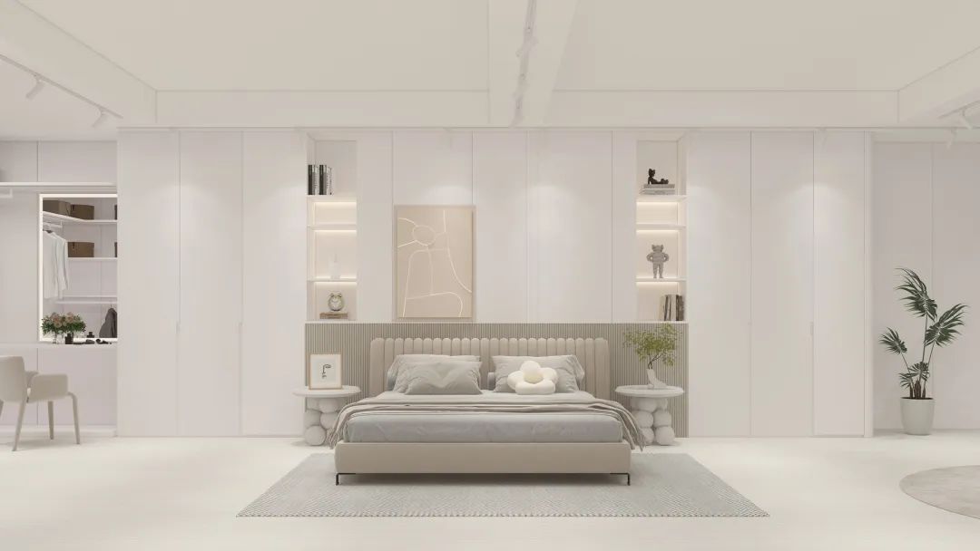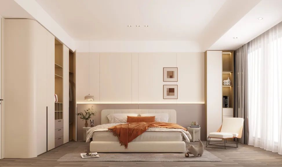 貝拉系列——曲線優(yōu)美的貝殼與圣潔月光完美融合,打造出如夢如幻的輕法式浪漫主義??臻g整體色調(diào)柔和,奶白色、奶咖色、奶灰色互相融合,賦予空間溫柔的力量。細節(jié)上,懸空式床頭柜與衣柜形成一體,簡潔大氣,視覺質(zhì)感極佳。拱形掩門結(jié)合同款玻璃門搭配嵌入式金色拉手,在收納與展示中尋找平衡,創(chuàng)造出精致的空間狀態(tài)。新貴系列——以曲線、圓弧、斜邊切線的造型,亮啞光的烤漆材質(zhì),強調(diào)事物本真的內(nèi)斂和克制,打造新貴的藝術(shù)空間。不同色調(diào)在空間肆意揮灑,奇妙碰撞,激活視覺層次。上下倒圓的通高門,結(jié)合極具辨識度的菱格背板,通過玻璃層板燈的映射,高貴典雅的氣質(zhì)在空間得到完整呈現(xiàn)。