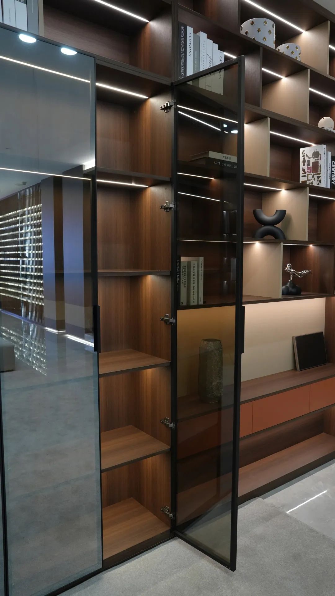 書香門第-客廳柜采用名貴黑胡桃木天然木皮與時尚元素的科技木皮作為飾面,性能優(yōu)越的歐松板作為基材,以環(huán)保水性漆涂裝,以精巧圓潤的圓弧工藝,搭配具有科技感的五金、亮化輔材,符合年輕消費群體審美趨勢、使用功能的衣帽間定制衣柜產(chǎn)品,彰顯精湛工藝、優(yōu)雅品味與高端品質(zhì)。月光寶盒-衣柜采用名貴黑胡桃木天然木皮與時尚元素的科技木皮作為飾面,性能優(yōu)越的歐松板作為基材,以環(huán)保水性漆涂裝,以精巧圓潤的圓弧工藝,搭配具有科技感的五金、亮化輔材,符合年輕消費群體審美趨勢、使用功能的衣帽間定制衣柜產(chǎn)品,彰顯精湛工藝、優(yōu)雅品味與高端品質(zhì)。