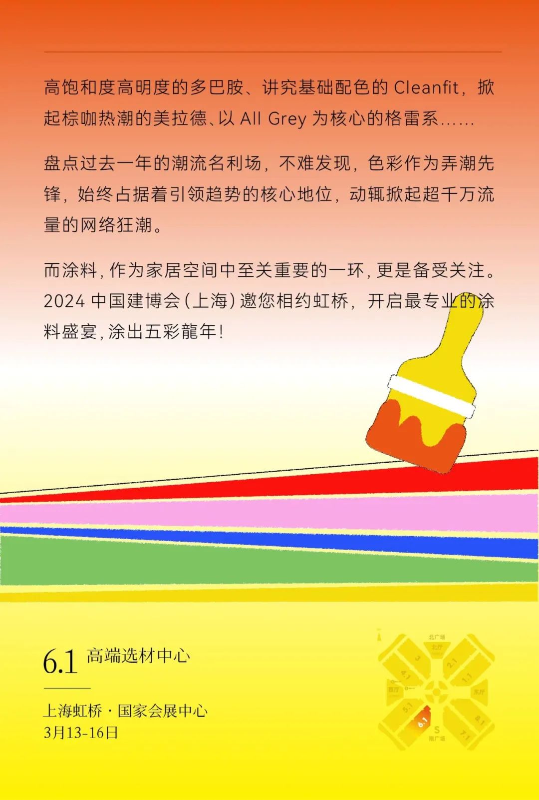 2024年3月13-16日,上海虹橋·國家會展中心,中國建博會(上海)邀您相約五彩新春,用色彩描繪龍年萬象!