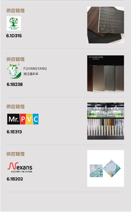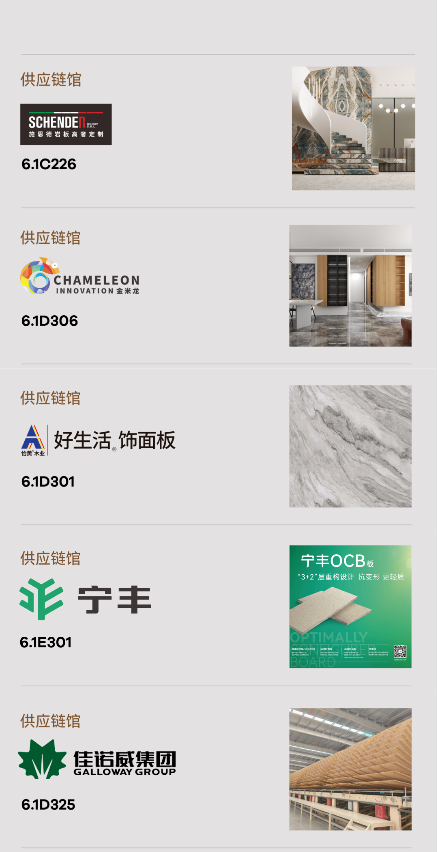 2024中國建博會(上海)精心打造6.1號高端選材中心、供應(yīng)鏈館,展出面積達(dá)3萬平方米,囊括高端涂料、集成頂墻、高端巖板、全屋配套、高端板材和高端五金等題材。其中,供應(yīng)鏈展館囊括施恩德、金米龍、怡黃、寧豐、梵品、亦木良品、福羊羊、玉輝、耀東華、茂友、維斯特、景河、居安、諾亞、佳諾威、德萬家、百源、壯象、寶源、香緹半島、河馬等供應(yīng)鏈上下游品牌,共同打造高端家居風(fēng)向標(biāo)。