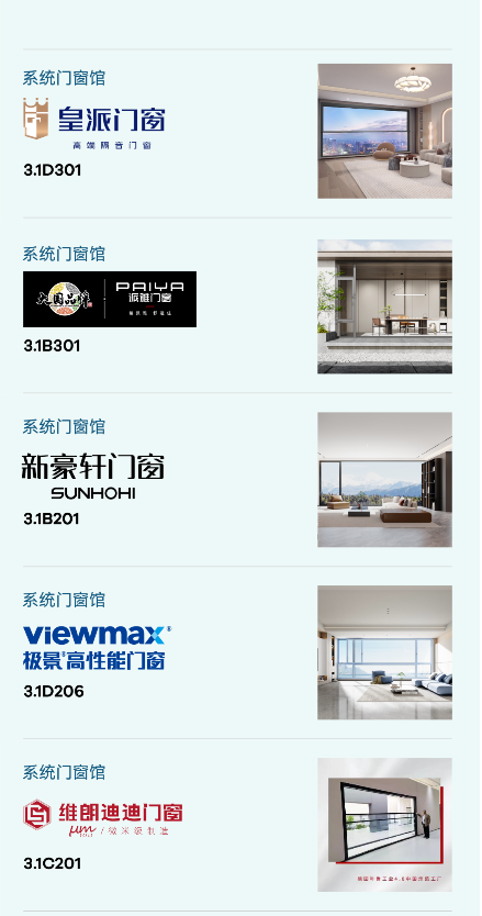 2024中國建博會(上海)重磅打造系統(tǒng)門窗展區(qū)。3號館及4.1號系統(tǒng)門窗館展出規(guī)模超4萬㎡,將囊括系統(tǒng)門窗、鋁合金門窗、鋁木門窗、陽臺空間、 陽光房及門窗配套等品類,齊聚齊聚皇派、派雅、新豪軒、米蘭之窗、瓦瑟、極景、德技優(yōu)品、維朗、易歐斯、飛宇、帝奧斯、智宬軒、靜贏、捷陽、智赫、遇美、海螺等門窗品牌,全力打造一個高效品宣、極速觸達(dá)、精準(zhǔn)輻射的“窗口”,助力企業(yè)加速出圈!