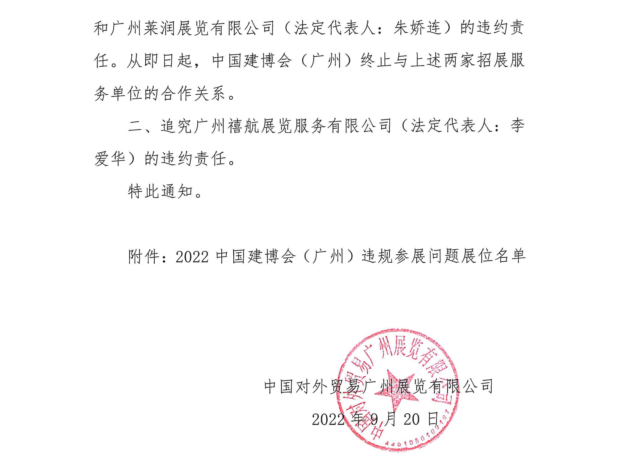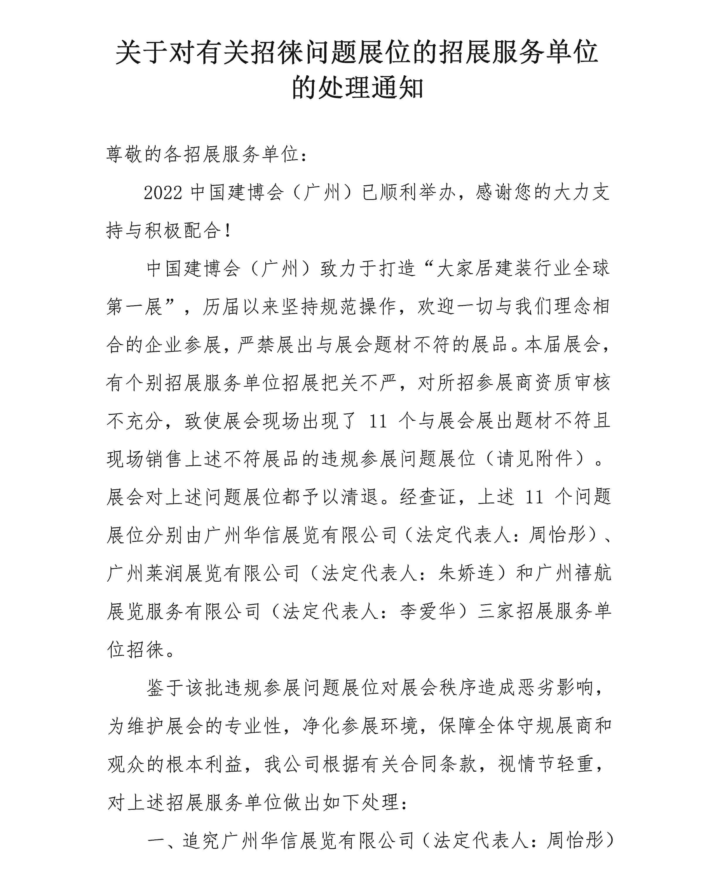 關(guān)于對有關(guān)招徠問題展位的招展服務(wù)單位的處理通知